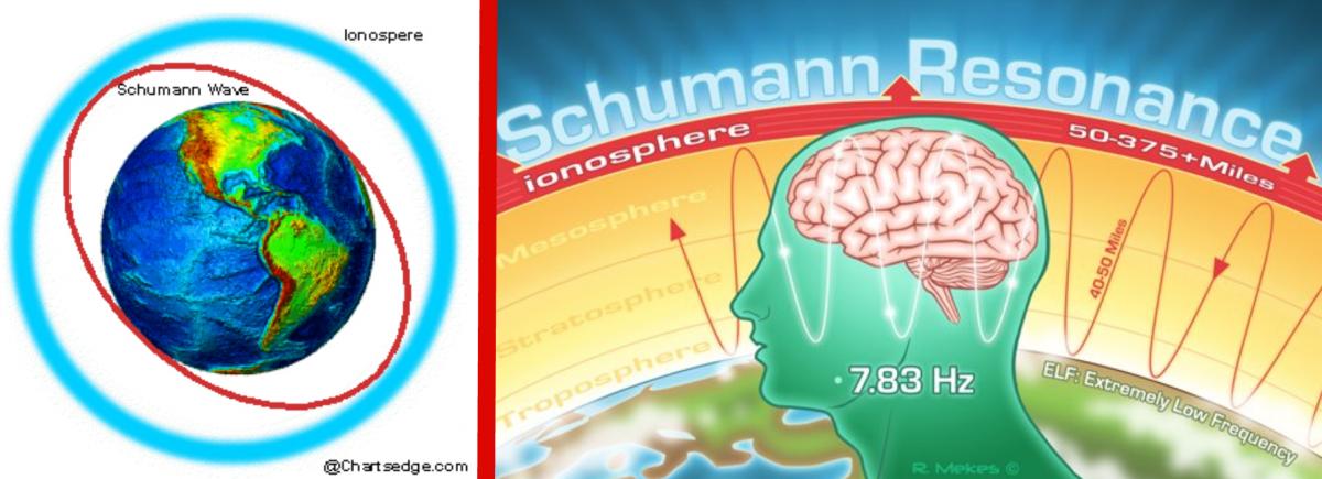 Συντονισμοί Schumann ατμόσφαιρας Γης. Η Earth Resonance (ή αλλιώς Schumann Resonance) είναι η φυσική ηλεκτρομαγνητική συχνότητα της Γης, περίπου στα 7.83 Hz, που δημιουργείται από κεραυνούς και την αλληλεπίδραση της επιφάνειας της Γης με την ιονόσφαιρα.
